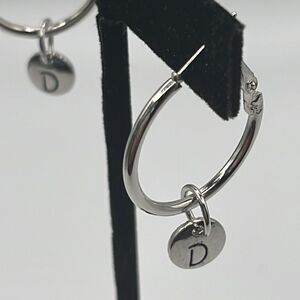 Choice of Silver-tone 1-in Hoops with Dangling Initial Charm (A-Z)