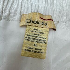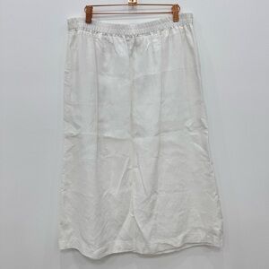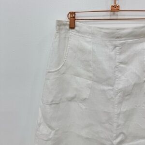 Choices 100% Linen white flat front skirt midi with front Pockets elastic back