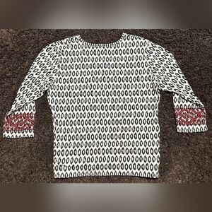 Choices Black Red White Embroidered Detail Top Sz. Large