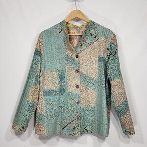 Choices Floral Patchwork Pattern Reversable Lightweight Jacket Plus Size 1X
