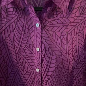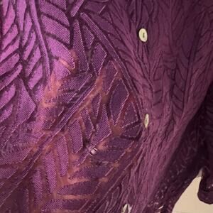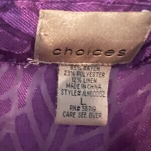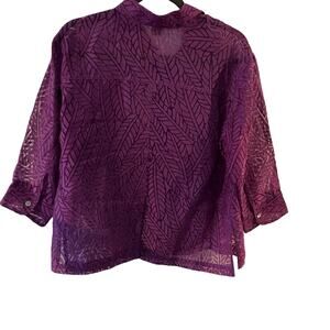 Choices Linen Blend Shear Leaf Top Tunic Purple Button up 3/4 sleeve Size Large