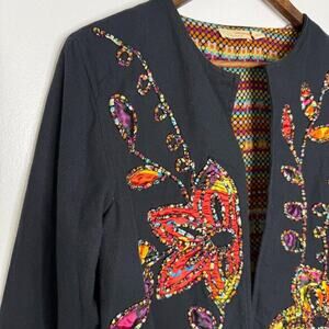 Choices M Embroidered Floral Jacket Artsy Boho Festival Style
