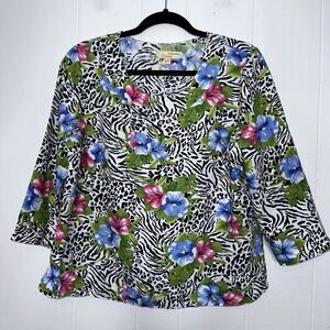 Choices Women’s 100% Linen Animal Print Floral Top Zebra Size Medium