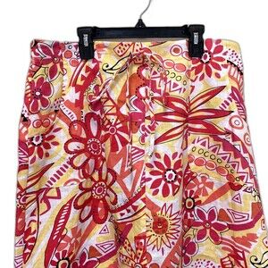 Choices Y2K 100% Linen Midi Skirt Pink Yellow Floral Lagenlook Size Large