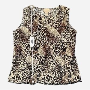 Choices casual accordion leopard print sleeveless top tank Medium brown black