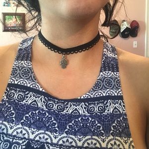 Black choker with lace detailing. Elastic material. Comfy and cute!