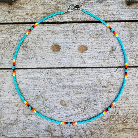 Cute turquoise beaded choker, handmade by The Pink Tepee