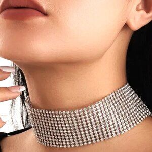 Choker Necklace Collar Mesh Rhinestone Bold Hollywood Glam Trendy Y2K Elegant