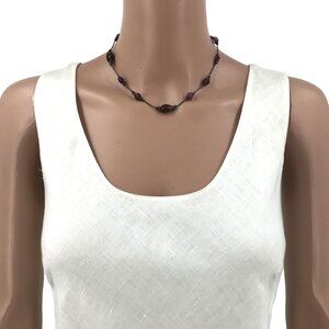 Choker Necklace Hematite Gray Purple Beaded 16 Inch Length