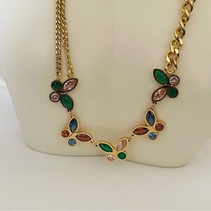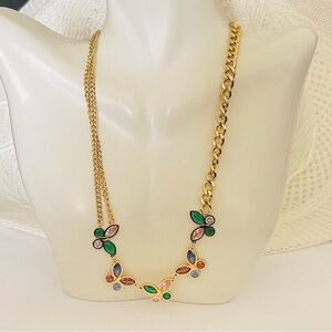 New!! Stainless steel Waterproof Gold tone Multicolored Crystals 14” length