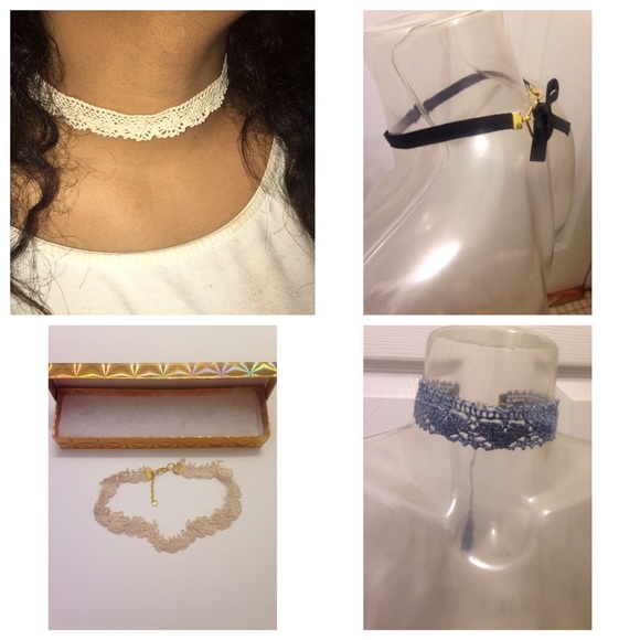 Crochet cream Choker denim color Choker black Choker and lace choker bundle