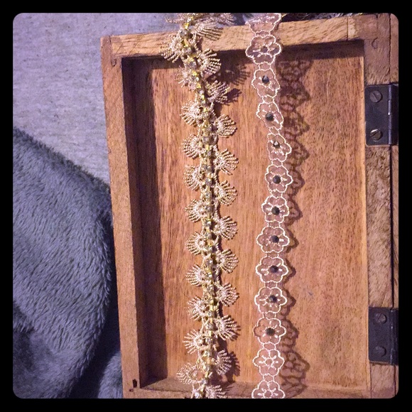 Two beautiful rose gold gold chokers with nice diamonds at it on they are not real damn diamonds but they are nice they add a good touch and is very elegant