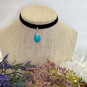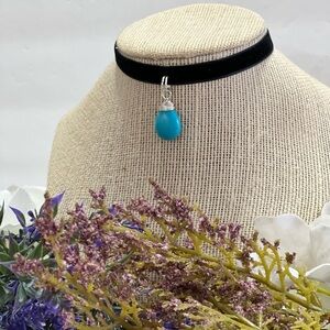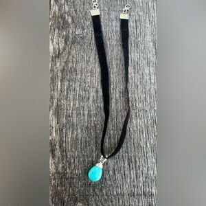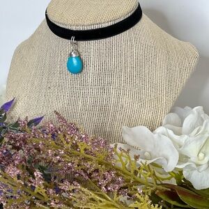 Choker necklace black velvet blue turquoise color necklace drop necklace tear