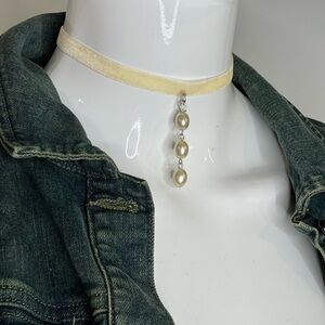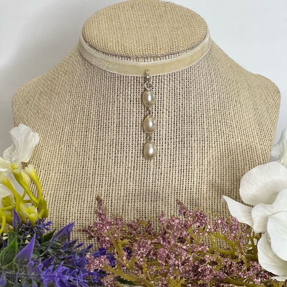 Choker necklace pearls white velvet necklace drop pendant pearl necklace cream