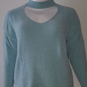 Plus Size Mock Neck With Cut Out Pull Over Sweater. Colors: Light blue & Light turquoise.