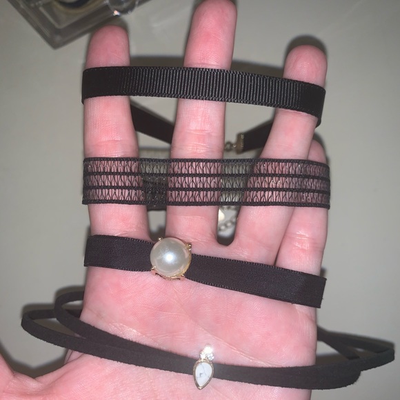 There are 4 black chokers and 2 light gray chokers