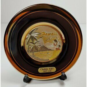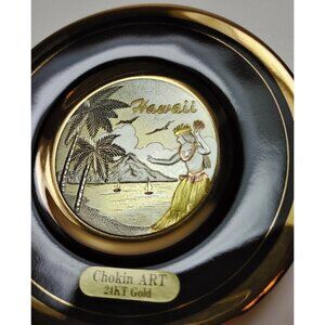 Chokin Hawaii Art Etched 24 KT Black Gold Rim Art And Deco Ornamental Plate VTG