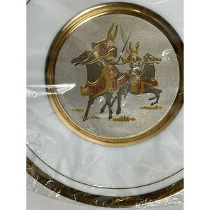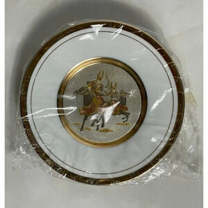 Chokin Plate Samurai Warriors Horseback Plates Gold Plated Display Stand 6"
