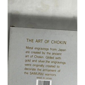 Metal Engraving from Japan is created by the ancient art of Chokin. Gilded with gold and silver, the engraving was originally created to decorate the armament of the SAMURAI warriors.