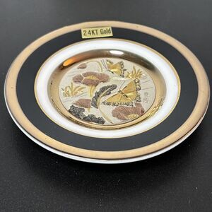 Chokin Plate With Display Stand 24 Kt. Gold Edged Japan Butterfly Butterflies