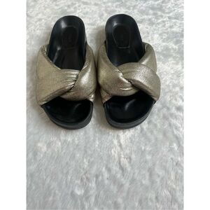 CHLOE Nolan metallic Crinkled Leather Puff Knot Chunky Sandal Slides Size 38 light wear as shown on side from rubbing