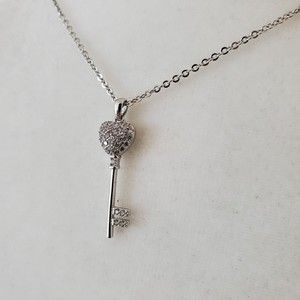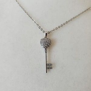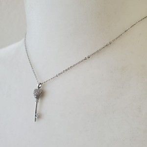 Chomel Silver Tone Cubic Zirconia Key Statement Necklace Dainty Feminine