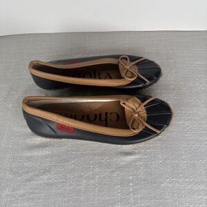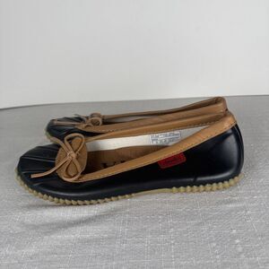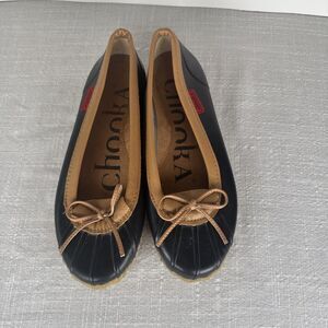 Chooka Duck Skimmer Black Tan Waterproof Rain Ballet Flats Slip-on Womens Size 7