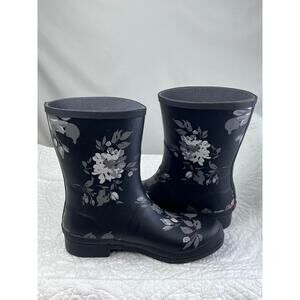 Chooka Women 8 Black/White Floral Rainware Eastlake Tillie Mid-Calf Rain Boot