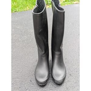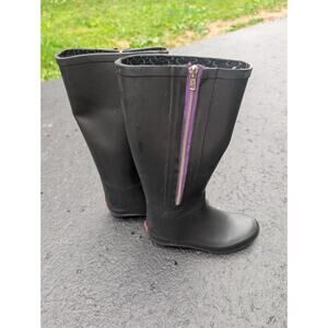 Chooka Womens Tall Black Rubber Rain Boots Sz 7 Zipper Farmcore Utility Chore