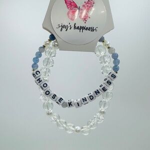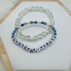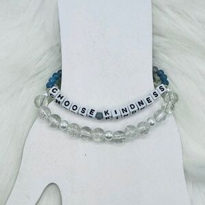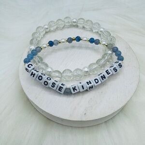This set includes one 8mm clear beaded bracelet and one 4mm mini Choose Kindness beaded bracelet. With elasticity to fit most wrist sizes, these bracelets serve as a gentle reminder to choose kindness.