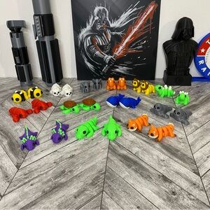 These Mini Flexi Animals/“Buddies” are 3D printed articulated mini fidget figures. Each weigh approximately 7 grams and are approximately 2in x 1in x 1in.