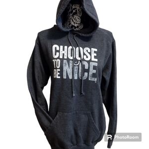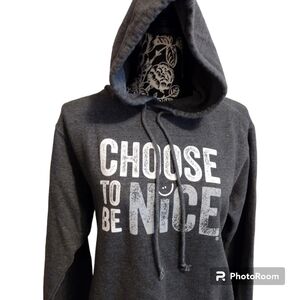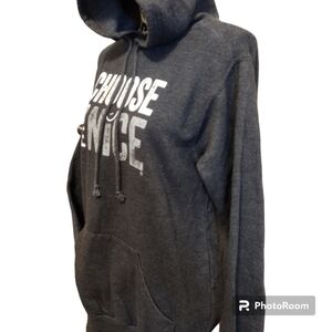 Gray hoodie with white and light gray print. The wear on the lettering is intentional.
