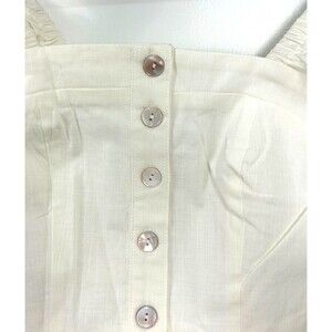 Choosy Women XS White Cream Cropped Top Center Buttons Ruffle Lined Smocked U4