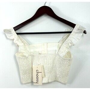 Choosy Amanda XS White Cream Cropped Top Center Buttons Ruffle Lined Smocked U4
