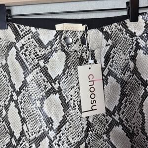 Keywords: Choosy Elizabeth pants, snake print faux leather, cropped statement pants, women’s size 8 trousers, Choosy trendy bottoms, bold snake print fashion, faux leather cropped pants, edgy night out pants, fashion-forward statement wear, Choosy women’s clothing