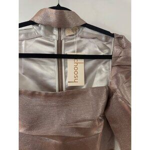 Choosy Metallic Rose Gold Puff Sleeve Zip Jacket Size 6
