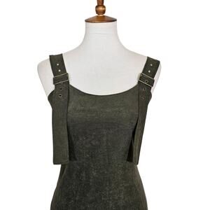 This chic olive green dress from Choosy is perfect for any occasion. Size small, new with tags. Its sleek design and comfortable fit make it a must-have in your wardrobe. Measures 45.5" long, bust is 16", waist is 14.5" and hips are 17"