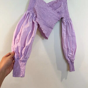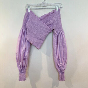 Choosy Purple Smocked Off-the-Shoulder Criss Cross Balloon Sleeve Blouse Small