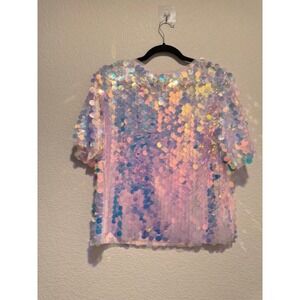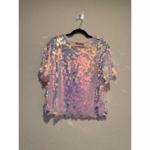 Keywords: sequin top, iridescent, sparkly top, party top, festival top, short sleeve top, pink sequin, purple sequin, Choosy, extra small, XS, glitter top, statement top, womens top, new with tags; Taylor swift, Swifty