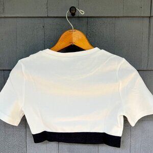Choosy features a sleek white design with a contrasting stretch black band that serves as the hem.