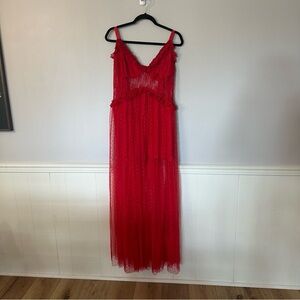 Choosy Womens Sleeveless Red Polka Dot Ruffle Lace Maxi Lingerie Dress Sz 18 NWT
