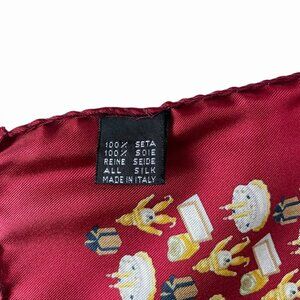 Keywords: Chopard scarf, designer silk scarf, birthday print pocket square, luxury gift idea, collectible silk square, Italian silk scarf, red silk accessory, luxury men’s pocket square, fashion scarf gift, Chopard Happy Birthday scarf, holiday accessory, timeless silk square, playful luxury accessory, Valentine’s gift
