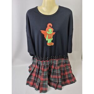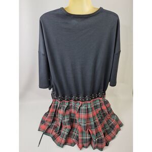 This is a Chopova Lowena Black & Red Solus Minidress in size medium. Pit to pit is 26" Back length is 33.5" Organic cotton jersey and cotton seersucker dress. Pleats and check pattern printed throughout. · Crewneck · Graphic printed at front · Self-tie lace-up detailing at waist · Cutout at waist · Dropped shoulders · Supplier Color: Black/Tartan O