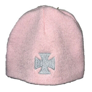 Chopper Chick Pink Winter Beanie Hat Grey Lettering Motorcycle Cross - Soft Knit