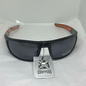 Choppers wrap-around sunglasses offer a bold biker look with a comfortable, secure fit. The lenses provide full UV400 protection, while the rugged frame design delivers durability and attitude. Ideal for motorcycle riding, outdoor sports, or everyday wear.