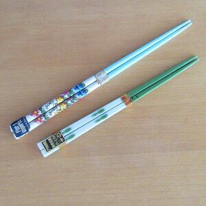 Up for sale we have 2 pair of new, unused, chopsticks. The floral Pier One sticks measure 9" long and the green patterned Made in Japan sticks are 7 3/4" long. Perfect for your next sushi dinner or for use in your hair!! (See sample pics for examples!).