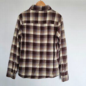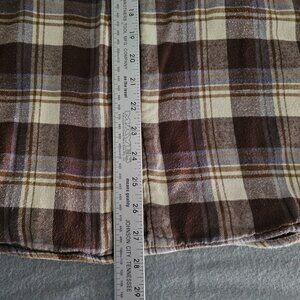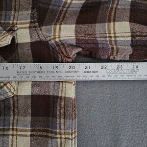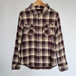 Chor Plaid Flannel Shirt Shacket Thermal Lining Pearl Snaps Pockets Size M Brown