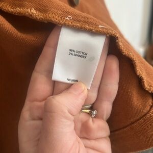 Stylish utility jacket in a warm copper hue. Features button closure and front pockets.