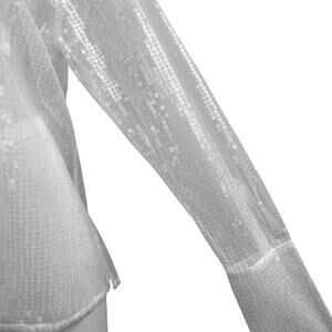 Chosen by KYHA Team 24 White Sequin Pockets Button Down Sheer Blouse Shirt Top L