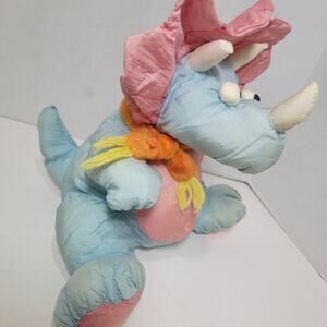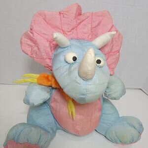 Puffer Dinosaur Triceratops Stuffed Animal 90s Vintage Retro Pastel Nylon Parachute material Puffy